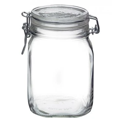 Bormioli Rocco #4949Q455 – Bocal <Fido> en verre , hermétique de 1L avec joint blanc. Idéal pour le stockage et la présentation de tous produits secs, liquides ou spécialités, produits maison comme les confitures, gelées et conserves. Le joint inclus fournit une couche supplémentaire pour assurer la fraîcheur. Fabriqué en Italie.