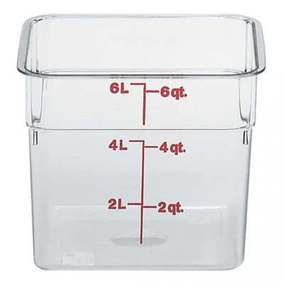 CamSquare de Cambro, boîte de rangement carrée, polycarbonate transparent. 6 Qt. (5.7L), avec gradations. NSF certifié, va au lave-vaiselle.