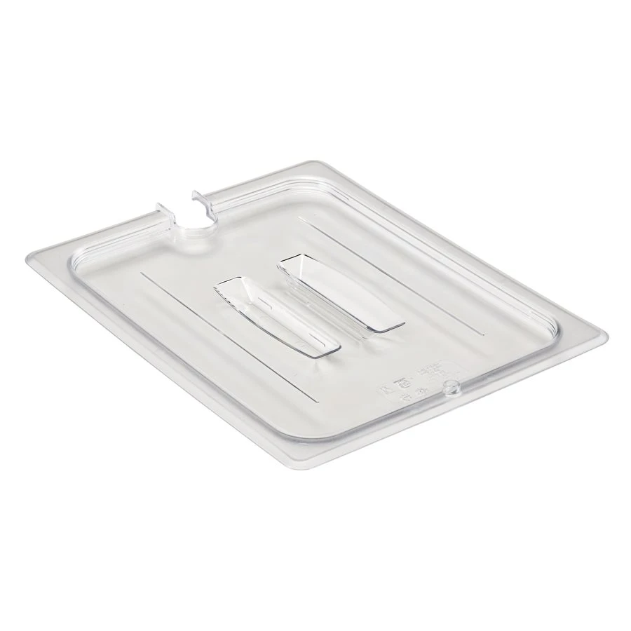 Le couvercle plat en polycarbonate transparent Cambro 20CWCHN135 Camwear de grandeur 1/2 vous aide à préserver précieusement vos ingrédients et aliments frais.