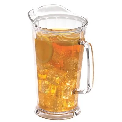 Cambro # P64CW135 – Pichet en plastique transparent 64 oz. (1,9L). Fabriqué en polycarbonate transparent robuste. Dimensions: diamètre max: 18.5cm. Hauteur: 23.5cm. Va au lave-vaisselle. Répertorié NSF. Fabriqué aux États-Unis.