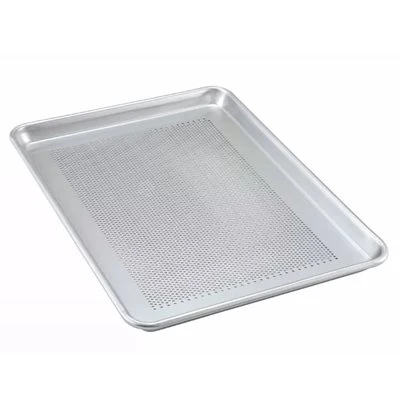 Winco # ALXP1318P – Le plaque/tôle de demi grandeur est construit en alliage d’aluminium de la série 3003, qui contient plusieurs éléments qui le rendent plus durable que l’aluminium ordinaire. Renforcé par un fil galvanisé, les bords du bac résistent à la flexion. Sa surface de cuisson est dotée de trous de 1/8po. Bien serrés qui fournissent un flux d’air et aident à cuire des produits croustillants.