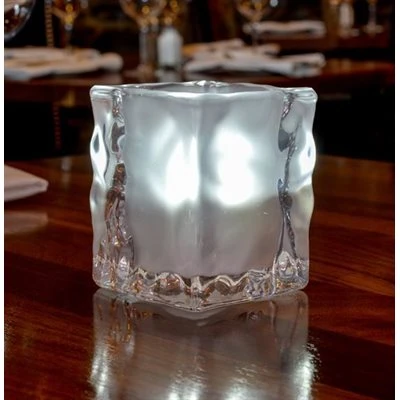 Clair / Blanc Givré. Carré, 8cm x 8cm x 10cm haut.