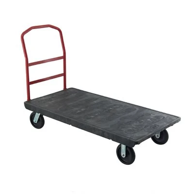 Trust Products # 4416BK – Camion à plate-forme OEASY avec roulettes TPR de 8 po. Plateforme noire avec poignée rouge (amovible). Taille de la plate-forme: 152 x 76 cm (60 x 30po.). La poignée mesure 76 cm (30po.) de haut de la plate-forme.